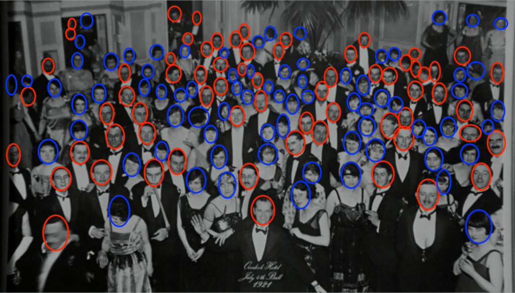 As for the photo itself, it features partiers sitting at circular tables in a large dining hall, not unlike the scene during the ghost ball. True of the “hell” photo too, so probably these combination shots of “heaven”/”hell” are meant to draw our attention to exactly that. For some people the ghost ball would be heaven, and for some it would be hell.