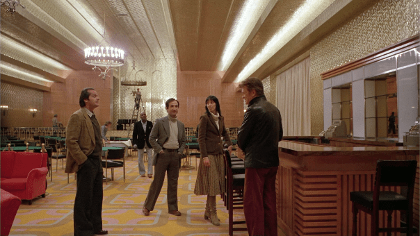 The title appears in time with the Gold Room sign, which is the room where the bulk of the hotel’s shining occurs at Jack. This pathway through the lobby is also where Jack sees all the balloons leading to the ghost ball (and where Wendy encounters two of the four horsemen). Also, the two singers being advertised on the sign are named Danny Haynes and Kim Woodman. I couldn’t find good evidence that these were real people, but Danny is obviously our main shiner, and Kim is the name of one Rudyard Kipling’s great novels, and Kipling will be referenced in the Gold Room when Jack quotes his poem The White Man’s Burden. In fact, the novel Kim inspired a thing called Kim’s Game, where you’re presented with mixed objects, and then some are removed, and you have to guess which were removed. The film is filled with disappearing and moving things. And, as we’ve seen, these first shots of the lobby are filled with things that weren’t there before (including white sheets over all the furniture). Maybe the F21 Key is Kim’s Game itself. So if the reference is intentional, this assortment of photos is a bit like asking “what happened to the ones here before?” And isn’t that a neat way of expressing the film’s general interest in days, places, peoples gone before us? Isn’t that what “the shining” is all about: being able to see things from the past, the future, and in the moment, that are unusual, and being able to make sense of it?