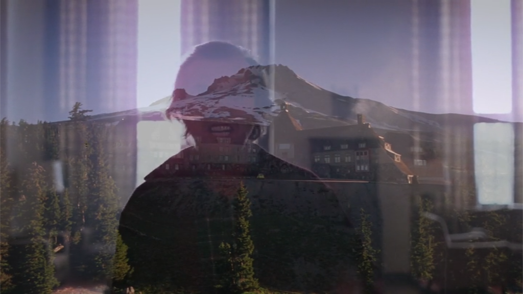 Also, that halo-shaped landscape overlays with December Afternoon, the painting that seems to suggest Jack’s death day. Meanwhile Trapper’s Camp, which includes an image of a man cooking, overlays with Wendy bringing in the bacon and eggs. Maybe this is why December Afternoon appears to Jack only after he kills Hallorann, because once that’s done, the hotel’s done with him, and he’s free to go die. Both of his final indoor scenes after killing Hallorann involve him passing it by. So maybe that’s the proof that Tony’s first vision to Danny, of the bloodfall with these two paintings across from each other–and which appears 24 mirrorform seconds after the one that accompanies Jack’s exit from the hotel, and which disappears 9 seconds before the one that appears after Hallorann’s murder–is really saying, your father and your future father figure will die this day.