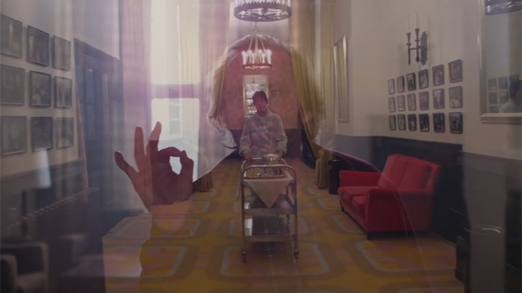 What’s more, the photo that overlays with the typewriter (orange box below) was seen behind Ullman during the interview. I’m not sure the significance, but it is odd. (Update: I’ve since discovered two incredible phenomena. There’s a language to the way photos move around the hotel, and the two behind Ullman have their own special relevance. So, the other thing that Ullman’s Eye was overlapping here was that copy of The New York Review of Books, with the articles hating on President Jimmy Carter.)