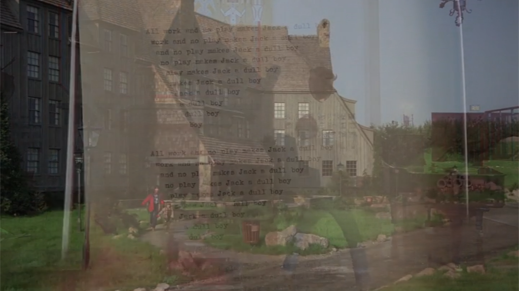 The All Work pages (for their literal value) are like the Jack’s Brain version of Keep America Clean. An empty slogan, signifying nothing, intended only as a placeholder. But of course, the way our minds can warp this phrase to apply to several of the surface-level themes of the story, as I just did with the bit about Danny’s play becoming his work, is similar to how someone hears “Keep America Clean” and wonders, “Is it not clean? Oh, it might become not clean, and it’s our job to keep it clean. America could never become unclean…unless some unclean people make it unclean…” If God’s on our side, who could be against us, etc. But I wonder if the point isn’t about how this slogan behaviour isn’t just the hobby horse of lunatics, but of sympathetic figures as well. Perhaps it’s a warning against allowing yourself to indulge too much in the “things we tell ourselves”, as it were.