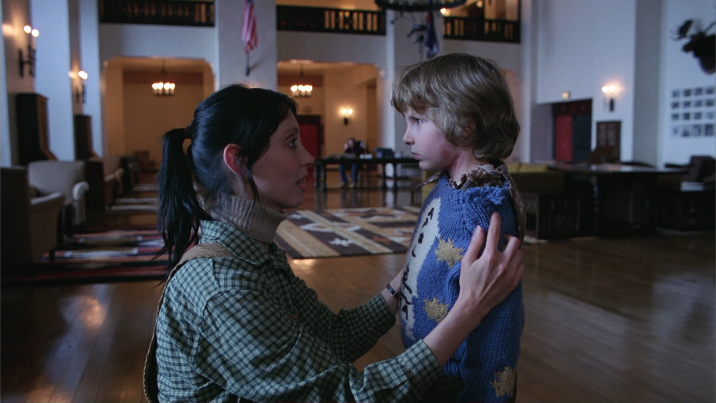 Which brings to mind the fact that, while the three main characters don’t not have arcs, their arcs are more conceptual than plot-driven. Jack barely wrestles with the temptation to kill his family, and the impetus of that impulse is almost nothing. Jack’s arc is “I’ll take the job! …and now I’ll probably kill my family, I guess.” Wendy’s arc is “Is my husband trying to kill me? He is! Should I do something about it? Maaaaybe…” And Danny’s arc is, “Should I go into 237? (Hallorann: No!/Tony: Bad idea!) Okay, I’m going!” Almost everything Jack does in the film post-TUESDAY feels utterly wacky and left-field to the guy we knew before. Almost everything Wendy does is reactionary, even taking up Jack’s slack (and if you think, “well, she took the bat to fight Jack,” technically she was still under the impression that a “crazy woman” was on the loose). And almost everything Danny does is not explained by dialogue, and the major lesson he learns is, don’t trust your dad not to murder you. Obviously I’m reducing everything to very simple terms, but I think this is what Kubrick means when he says that translating a story to screen is like “codebreaking”, because a strong story depends on all the form and function we’ve been talking about, not simply characters having clear motivations, and every gun going off in act three that appeared in act one. Characters can have unclear motivations that force you to go off and think about what you just saw. And if a gun appears in act one that doesn’t go off in act three (for instance, many early audiences thought Danny was like a Linda Blair or a Damien child until acts 2 and 3 got under way), or doesn’t go off the way you thought the story was telling you it would (I’m reminded of one reviewer’s notion that the Yei/Zapotec mural characters would jump off the wall and start attacking the family), that’s not the same as “bad storytelling” or “bad screenwriting”.