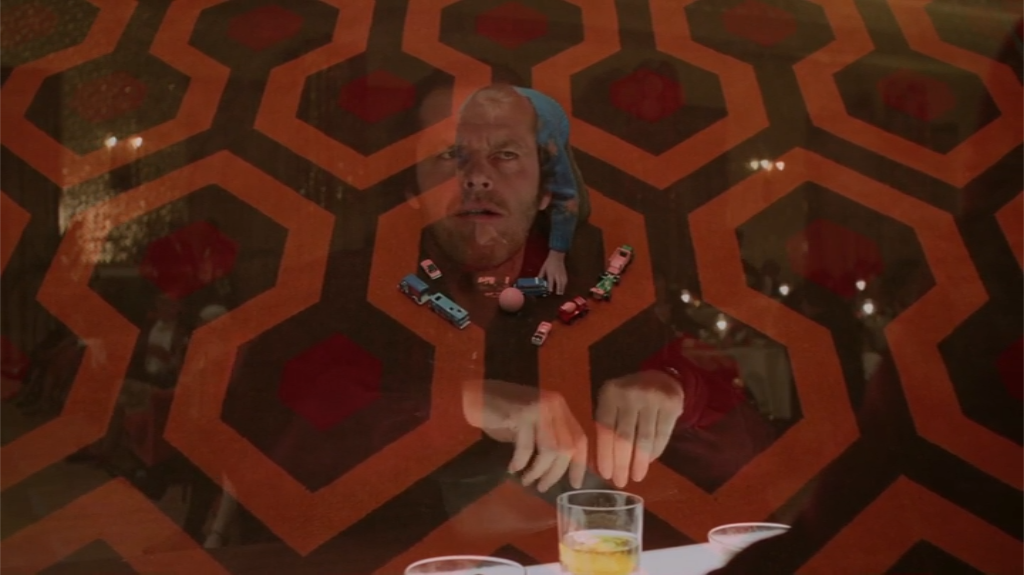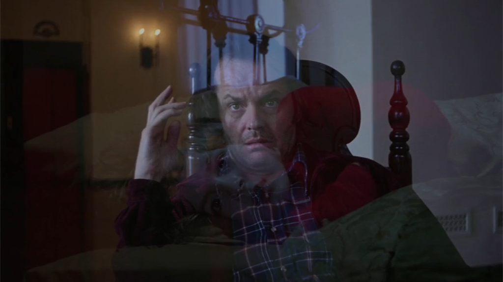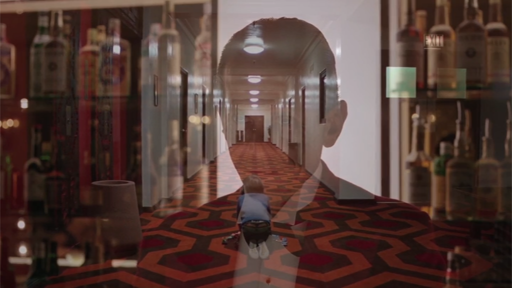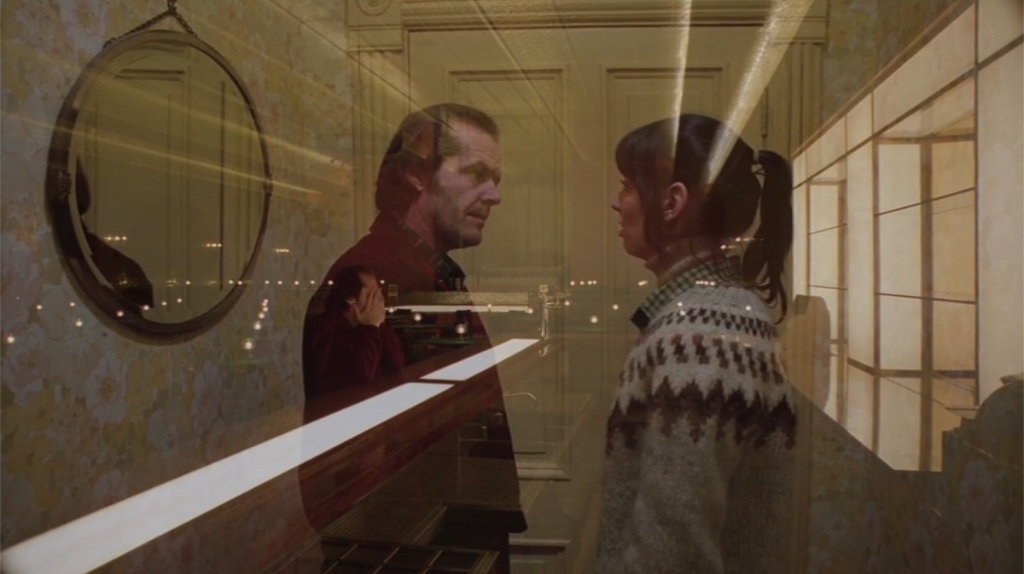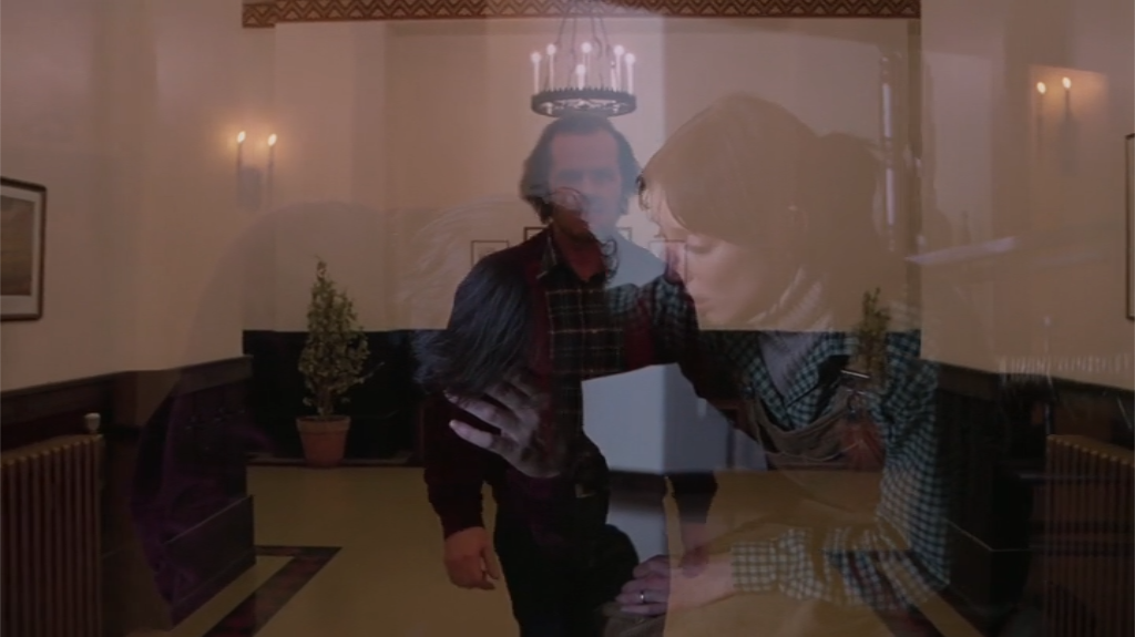 As Wendy assures Jack “It’s the truth! She tried to strangle him!” a shining Danny appears, and before Jack asks which room this all happened in, he and Danny overlay in this interesting form: the abused, and the disbeliever. Father and son. Divergent aspects of one potentiality, one cycle of abuse. We can imagine this child becoming this man.
