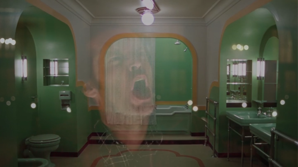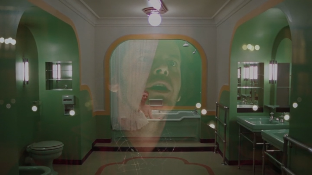 As Jack begins to make his confession to Lloyd about hurting Danny, nude ghost begins to walk slowly back to the tub. Almost like she’s disgusted by Jack’s truth. Here, as the curtain fully closes against him, he’s saying, “Coulda happened to anybody…and it was 3 goddamn years ago!” So right as the ghost vanishes, Jack’s wrath explodes, almost as if he feels repudiated.