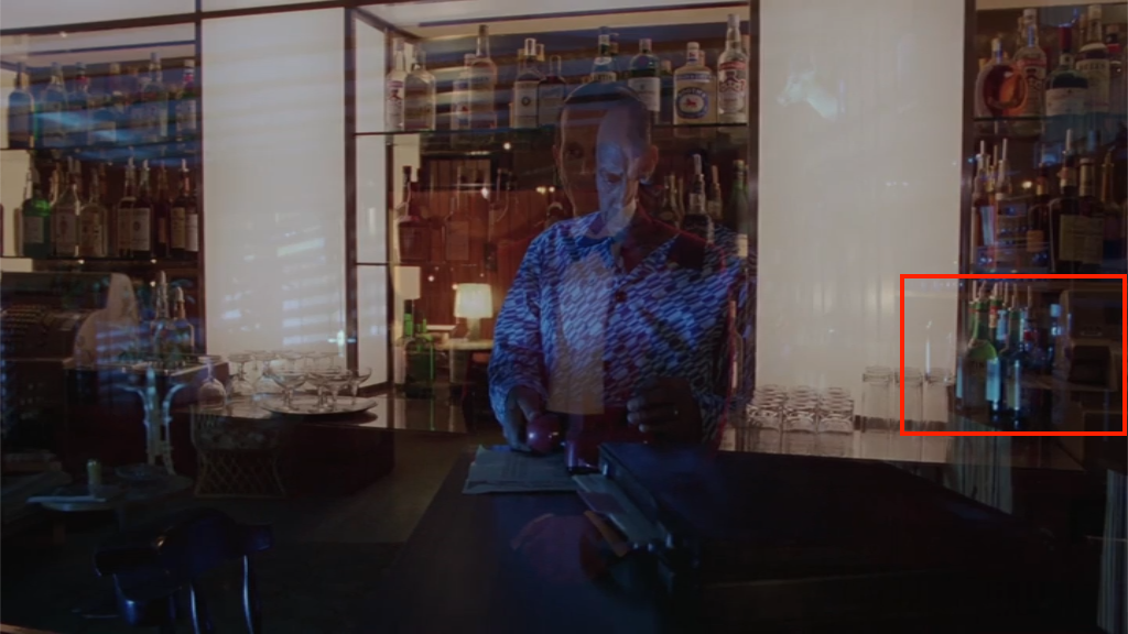 Hallorann’s red phone overlays Jack’s red jacket for a moment.