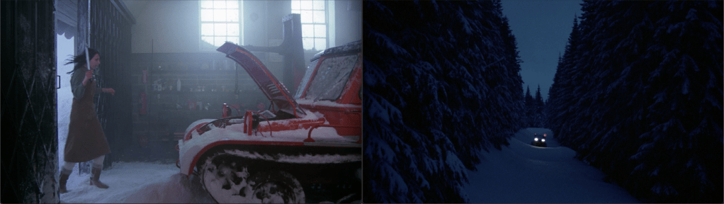 I think it’s pretty interesting that we’re seeing backward Wendy aghast at the severed heart of the snowcat, which overlays Danny, who has a bunch of knives hanging over him in the forward sequence, not to mention the fact that forward Wendy is looking at the one other (real) thing (Hallorann) she’ll later look at in mortal horror.