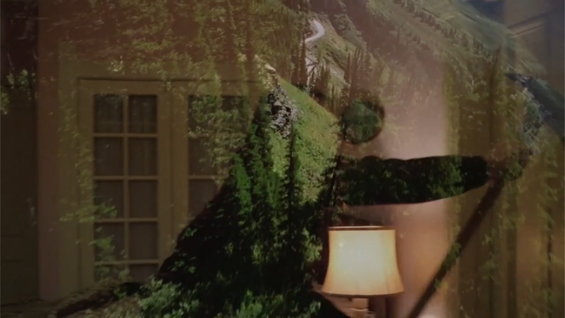 - 3) as discussed, the postcards in front of Wendy’s face here bring to mind the beginning and the end of the movie, and it’s at the end that we get that crossfade where photo Jack looks like he has a Hitler moustache;