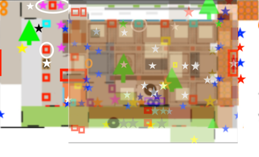 Then I made a series of maps showing where all the various object types appear (as well as absurdities and ghost locations), and overlaid that with the movements one, and again, learned very little. Besides the fact that I think it’s neat how complex the design of the hotel really is.