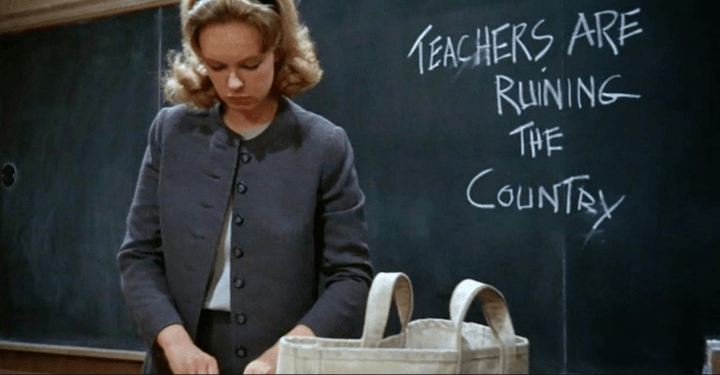 The phrase “up the down staircase” is uttered at the hero of the story, Sylvia Barrett (Sandy Dennis), a new teacher at an inner city school, by one of her fellow teachers, to inform her that she is breaking a rule she probably wasn’t aware existed, or mattered. “Mrs. Barrett, are you aware you’re going up the down staircase?”