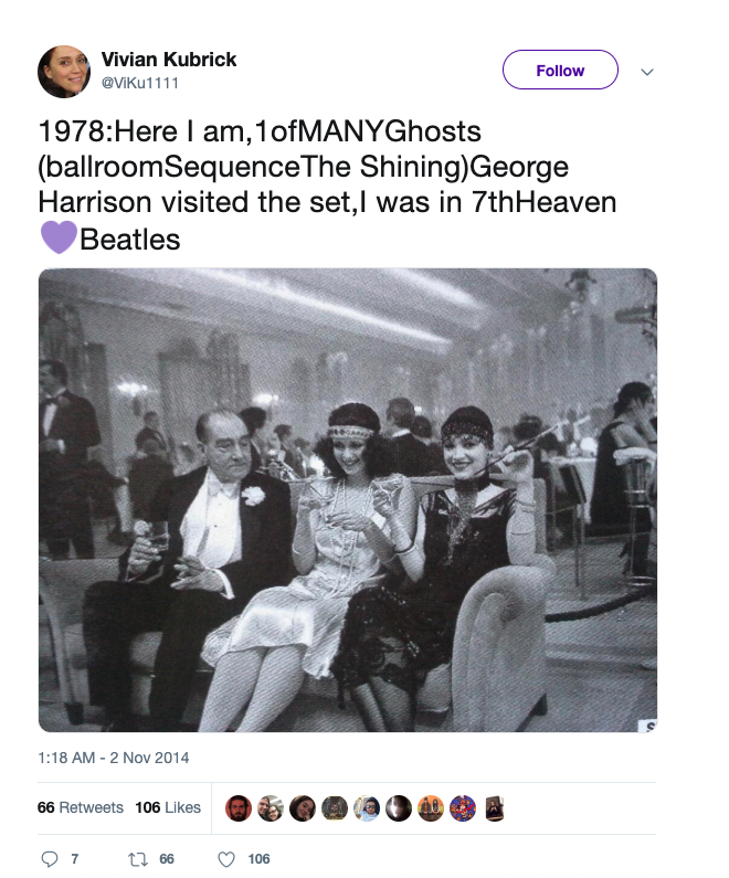 Or this tweet from Vivian Kubrick saying George Harrison was on set during filming.