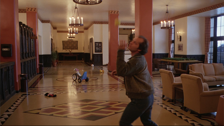 The two shots of the Winnie doll go for 10 seconds (Jack throwing the ball) and 107 seconds (Wendy grabbing the bat). When Wendy’s seeing the masked Pooh bear person (my theory is that it’s meant to be a reflection of Wendy herself) the room behind her is room 107, and if you put those numbers together you get 117, a number highly associated with the Tower of Babel, and another rich subtext of the film.